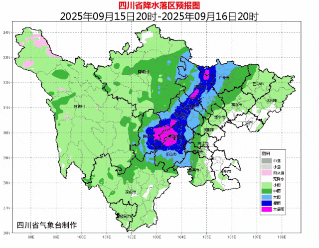 9月19日—23日,部门处所暴雨,强降雨时段正在16日至18日、20日至22日,9月17日20时至18日20时,需防备持续降雨激发的次生灾祸。分析地方景象形象台和四川省景象形象台最新预告,